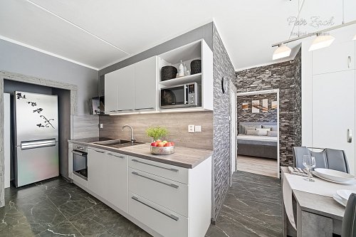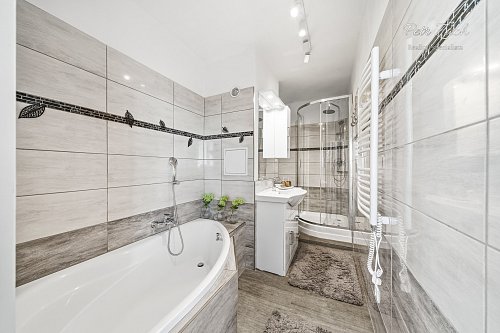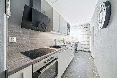 Součástí bytu je nová kuchyň s jídelním koutem, která je vybavena moderními spotřebiči a činí tak vaření příjemným a rychlým. Koupelna je moderně zařízená, vybavena jak vanou, tak sprchovým koutem. Byt dále disponuje lodžií, která nabízí příjemné posezení a možnost vychutnat si čerstvý vzduch.